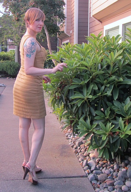 I bought this dress from a small Seattle shop that I can no longer find. Boo! They had a lot of cute dresses and an online store too. But the best bargain isn’t a bargain at all if it doesn’t get used. Last time I wore this, I remember being slightly acutely aware of its body-hugging shape, so I added a 3/4 length blazer. This time, I’m going for it! It will be perfect for the burlesque show I’m going to this weekend. And I’ll be taking this with me to Vegas. It’s similar in style to a Hervé Leger bandage dress, but without the $1200 price tag.