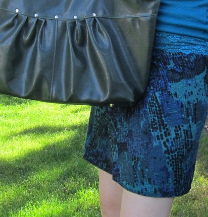 The one-size skirt is by Portland designer Erin MacLeod. I have a couple of other skirts by her. They have a row of snaps as a waistband and are fully adjustable.