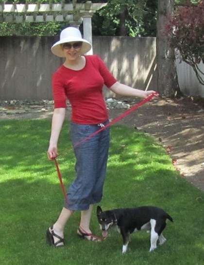 I have a dog-walking wardrobe. Castoffs and old clothes not fit for my regular wardrobe. Most of my outfits are nothing to write home about. Comfy shoes, jeans that I don’t worry about when I get jumped on by crazy dogs at the park, and a weather-appropriate top (usually, that means a rain slicker; it could be a fleece sweater, or even a t-shirt, depending on the day).