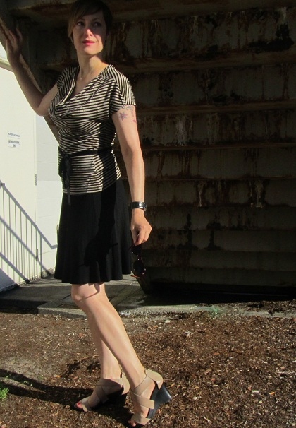 The stripes and cut of this top have a sailor-inspired feel. I’m not sure why. It’s not a boatneck and it’s not navy blue, but to me it feels nautical. I’ve noticed a shift in my attire lately. I’ve been gravitating to more neutrals. I wonder if it’s because of fall.