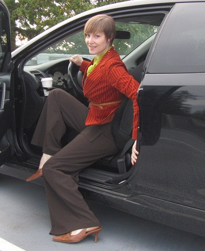 I added the scarf for work because the tank was a bit low-cut. I also carried a Shiraleah clutch so I could stash away my keys and phone. I like how the slingbacks look like boots with long, bootcut pants (as long as I’m standing up).