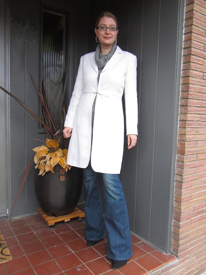 What a beautiful jacket!! I love the length and cut! Andrea looks great!! So elegant and can be worn with jeans or something dressy – very versatile, goes with everything!