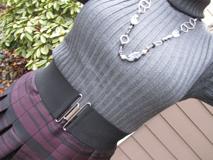 It is a really flattering skirt and it fits perfectly. I have a few ideas for how to wear this, but I started with a turtleneck and tights. I added a belt to emphasize/create more of a waist.
