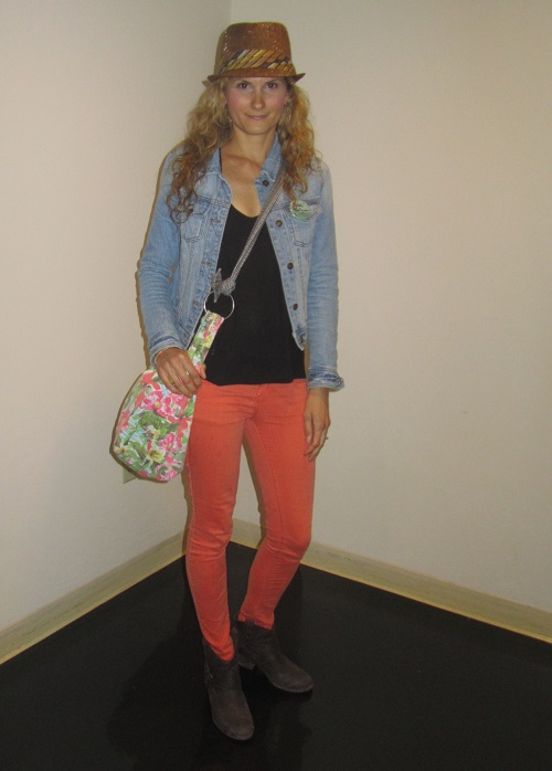 I stopped Ky Lee Fournier because I loved her casual style. I’m a huge fan of fedoras and skinny jeans and I like how she threw a denim jacket into the mix. The faux leather booties add a bit of toughness and the cotton floral bag is a great soft spring piece. Ky Lee is a vegan sports nutritionist from British Columbia and she’s as fit as she is stylish!