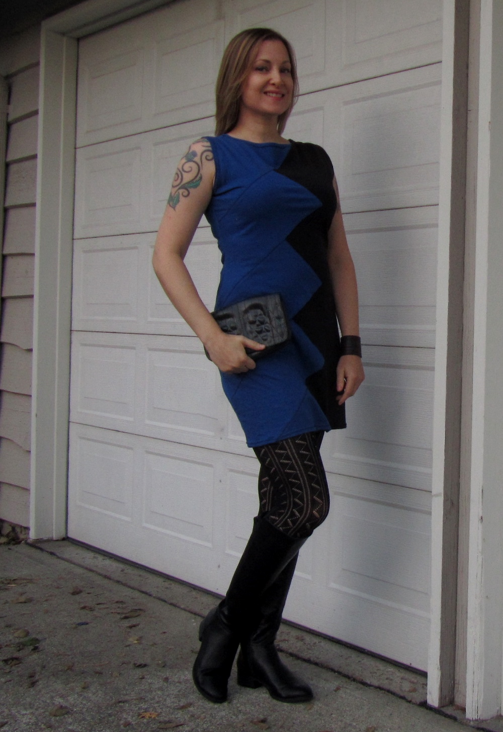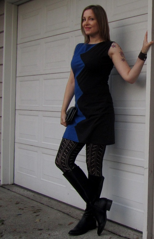It’s tights season so I went with a patterned pair. At the party, someone noted that the pattern on my tights is zigzagged too. I think it works, even though I wasn’t trying to be that coordinated.