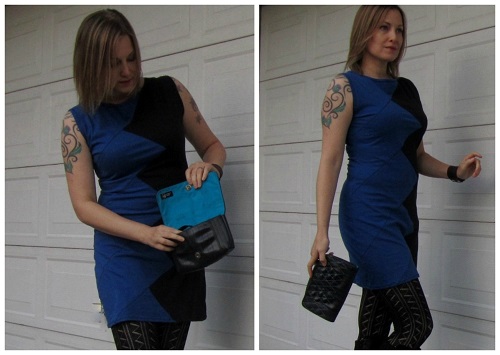 I love the zigzag color-blocking (the back, which I neglected to capture, is a straight seam) and the colors of this dress. I’ll be able to wear it with plain tights, bare legs and heels, or with sandals.
