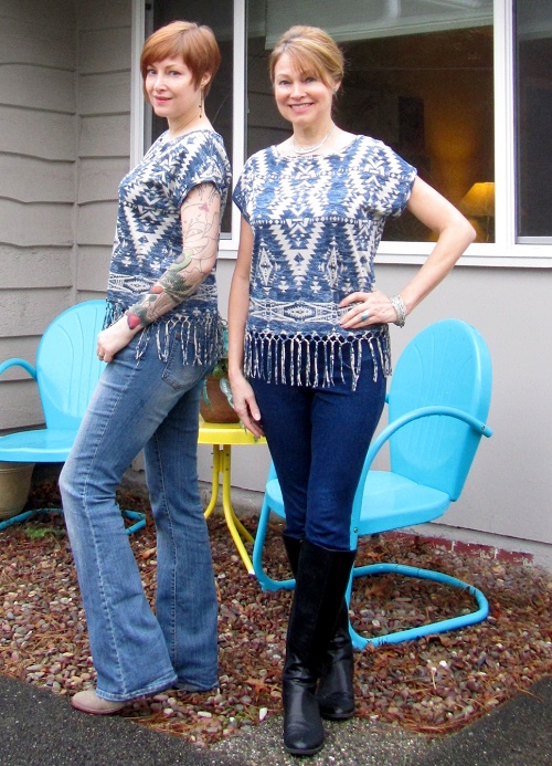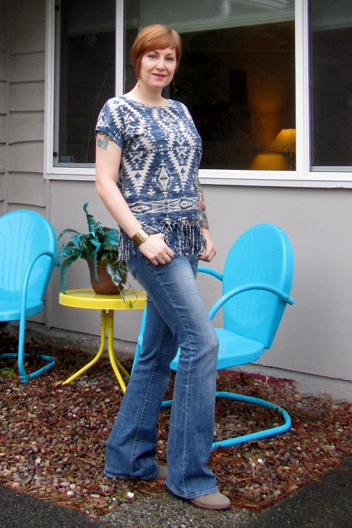When my mom came for a visit recently, she came bearing gifts. This top was one of her presents. I like that it has a Native American-inspired design, and looks more like a woven pattern than a knit. The fringes add a neat western flare.