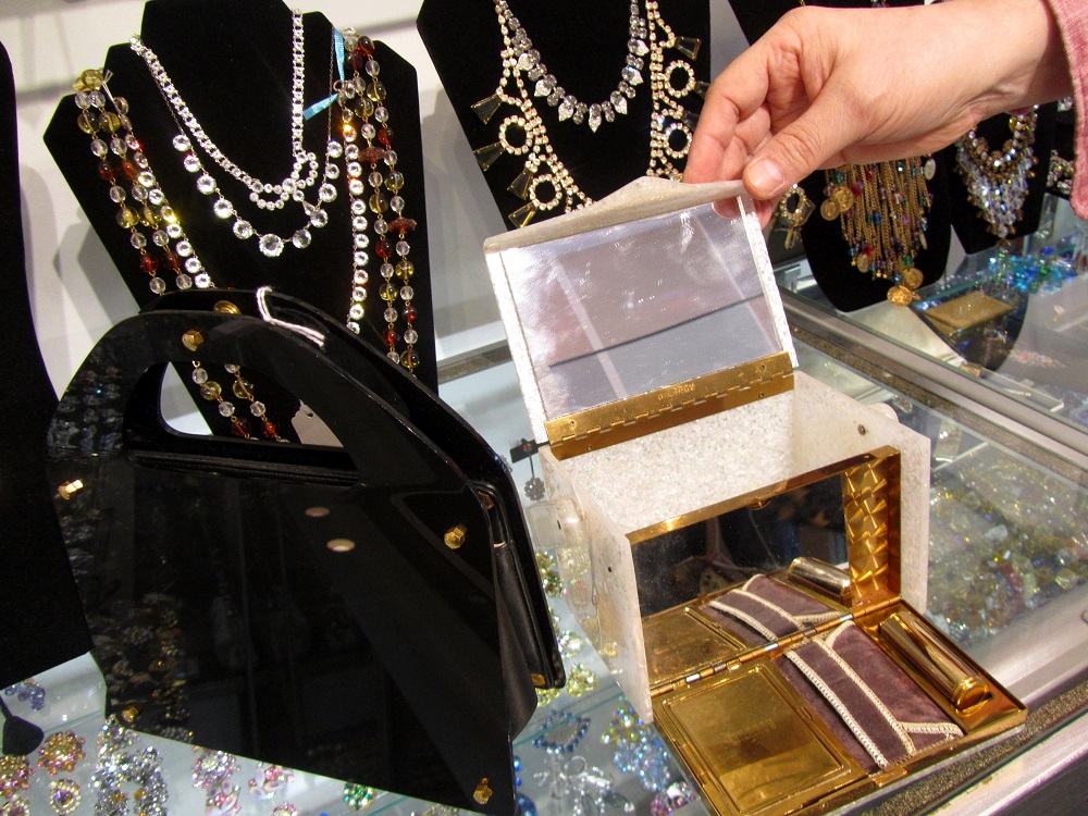 So it was no surprise that while I popped into a pet supply store in SoHo, my parents were making friends with a shop keeper across the street. We were treated to a history lesson and tour of mid-century American style. Deco Jewels is an antique specialty shop dedicated primarily to vintage Lucite handbags. This tiny store boasts the world’s largest collection. The owner even wrote a book about it!