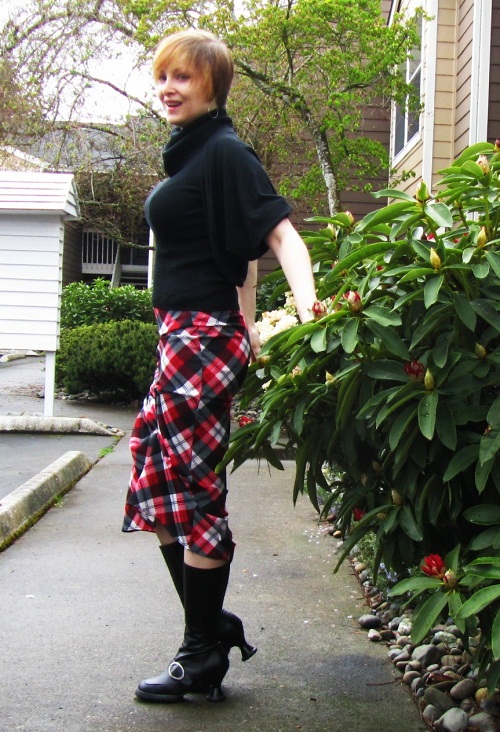 I’ve got to call out my shoes. They’re part of a mini-spree I went on at The Chocolate Shoebox, a vegan shoe and chocolate shop in Seattle. The brick and mortar store is closing and times are tough so I thought I’d support a local, ethical, small business. The boots will cost me 5 points (according to the Wartime Wardrobe Challenge I’m taking part in), but I don’t mind one bit! I got the belt too, but belts aren’t on the list.