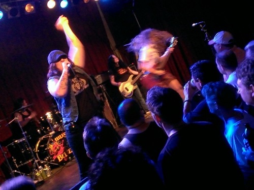 There have been a few members rotate through Hell’s Belles but the lead guitarist is a constant. She delivers an impressive and energetic performance and work the crowd. She spends every moment running around the stage, head banging and flinging her blonde dreads around, and giving everyone their money’s worth. Not to mention she has mad guitar skills!