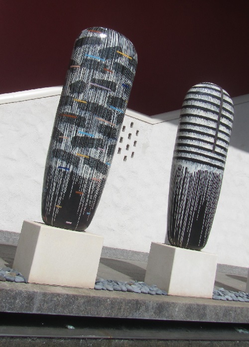 After the hike, Hubby had a terrific surprise in store: Lunch at the Honolulu Museum of Art courtyard café. From our table, I took in the sculptures as I drank Riesling and munched on an apple-walnut salad.