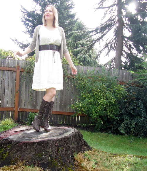Sometimes a simple white T does the job well. This shirt has a slight cowl neck so it’s not exactly plain.