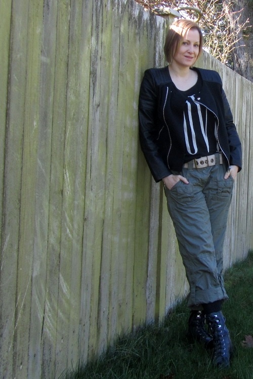 My boots are also faux. They’re G by Guess, and I guess that’s their lower-end line. Suits me fine. They’re comfortable and who doesn’t want a nice combat boot? I’ve even worn these with long and short skirts for a 90s grunge vibe.