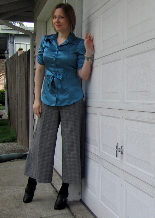 I paired my culottes with a neat two-tone top from my friend Andrea. She’d contributed it to a recent clothing exchange and I picked it out. I gravitate toward her items because she has fantastic style.
