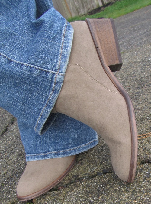I’ve got to call out my shoes. They’re part of a mini-spree I went on at The Chocolate Shoebox, a vegan shoe and chocolate shop in Seattle. The brick and mortar store is closing and times are tough so I thought I’d support a local, ethical, small business. The boots will cost me 5 points (according to the Wartime Wardrobe Challenge I’m taking part in), but I don’t mind one bit! I got the belt too, but belts aren’t on the list.