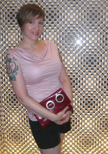 Here you can see my whole outfit. I wore an H&M dress, carried an oversized Asos clutch, and wore my Jimmy Choo shoes. My necklace is from Buffalo Exchange.