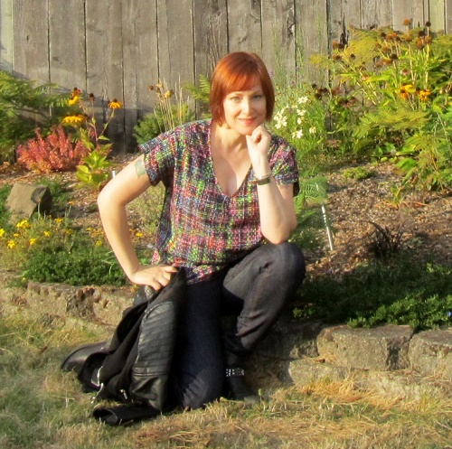 I paired my skirt with a bright fleece jacket. Fleece is very Pacific Northwest. Everyone has a fleece jacket. I find most aren’t very fashion-forward, but in a moto style cut, I approve!