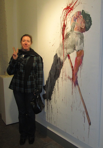 They say smoking kills, and these paintings, show the subject smoking during a gruesome and violent situation (granted, the cigarettes are hard to see at this scale). I don’t know if that’s the message intended by the artist, but we noticed the cigarette theme and decided to take our pictures next to various paintings in this series. I was trying to juxtapose joy and pain (hence my silly smile). Autumn was far more stoic, and Amy was pretending not to look.