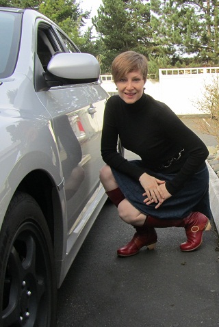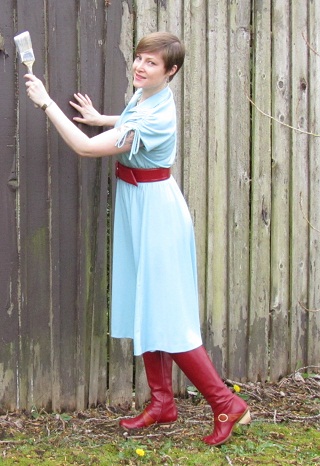 Here’s a head to toe thrifted look. I got the dress from one clothing exchange and the boots from another. But it’s a look that’s meant to go together. I feel very 60s mod in this outfit. The dress is short enough to belong in the 60s too–yikes! But it isn’t more revealing than shorts, so I’m embracing the look.