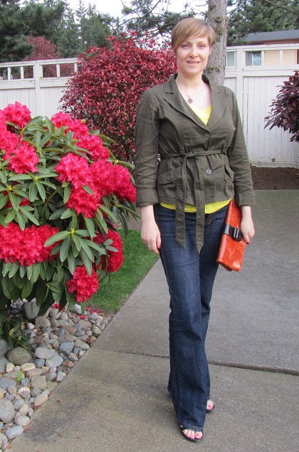 Kristen saw this dress when I styled it for three seasons. She said it would also look good belted. How right she was! I grabbed this faux suede tie-belt from my chartreuse dress. When belts are included with an outfit I usually break them apart and wear them separately.