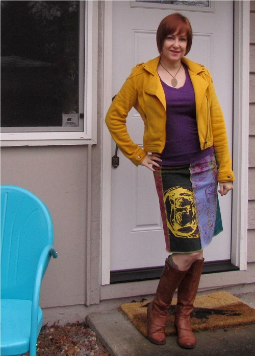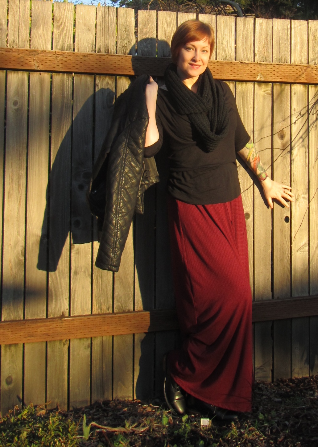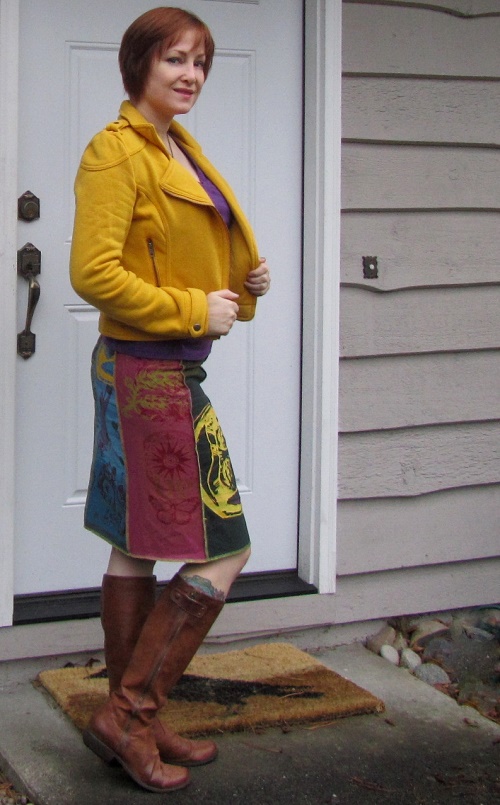 I wore my new skirt with a scarf (purchased in a small shop), so maybe that evens things out. Scarves are my favorite way to dress up an outfit (and stay warm).