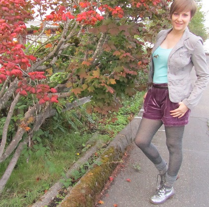 I’ve got to call out my shoes. They’re part of a mini-spree I went on at The Chocolate Shoebox, a vegan shoe and chocolate shop in Seattle. The brick and mortar store is closing and times are tough so I thought I’d support a local, ethical, small business. The boots will cost me 5 points (according to the Wartime Wardrobe Challenge I’m taking part in), but I don’t mind one bit! I got the belt too, but belts aren’t on the list.